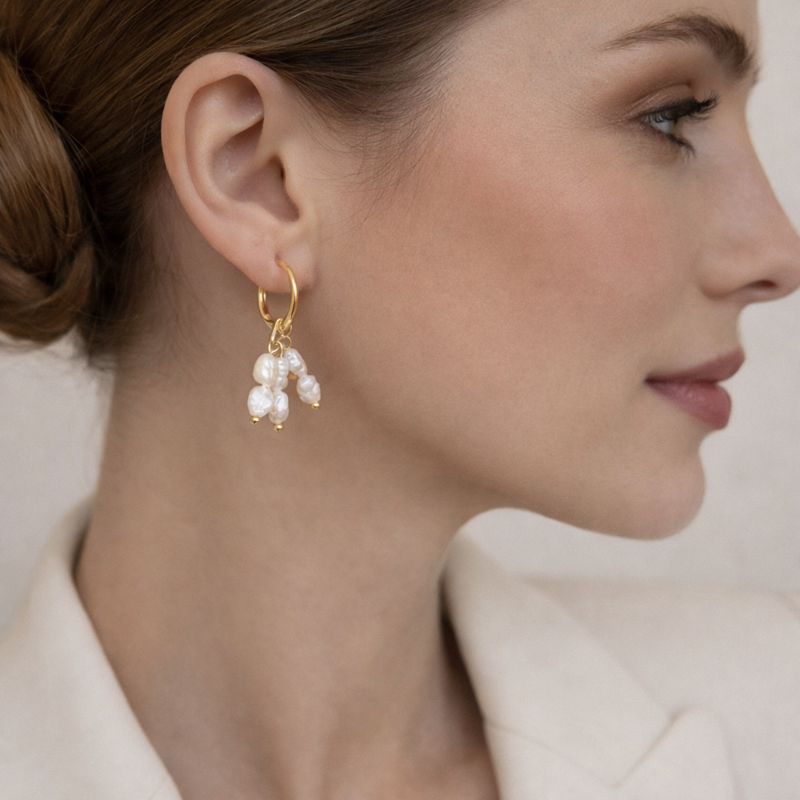 El modelo Florencia es un aro muy delicado, con argolla chapada en oro y perlitas cultivadas, pensados para acompañarte todos los días. Su diseño liviano y femenino aporta un toque de luz y sofisticación sin esfuerzo, perfecto para looks cotidianos o para elevar un outfit más simple. Disponible también en plateado.