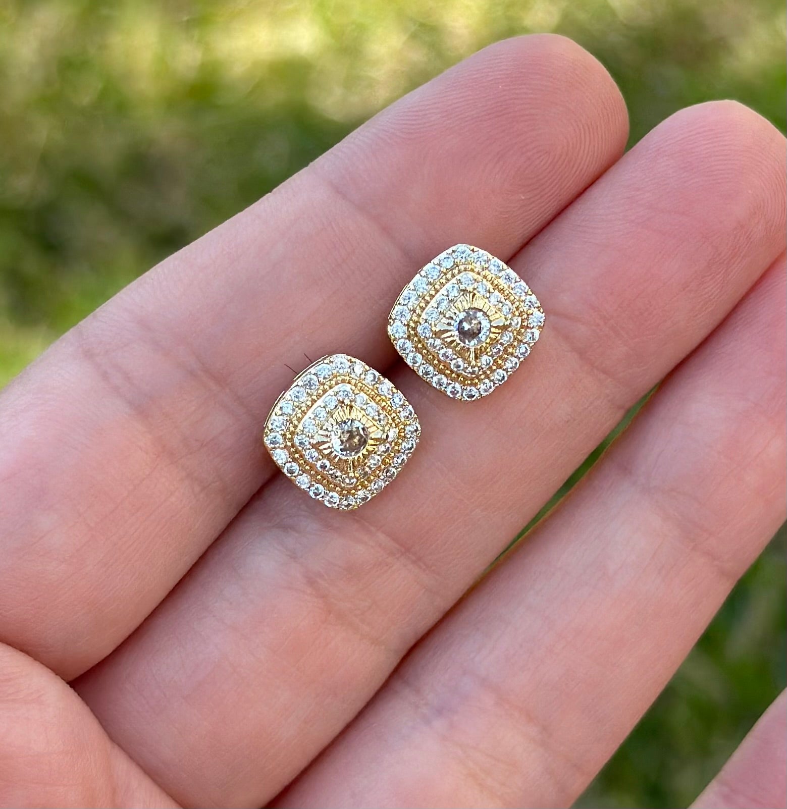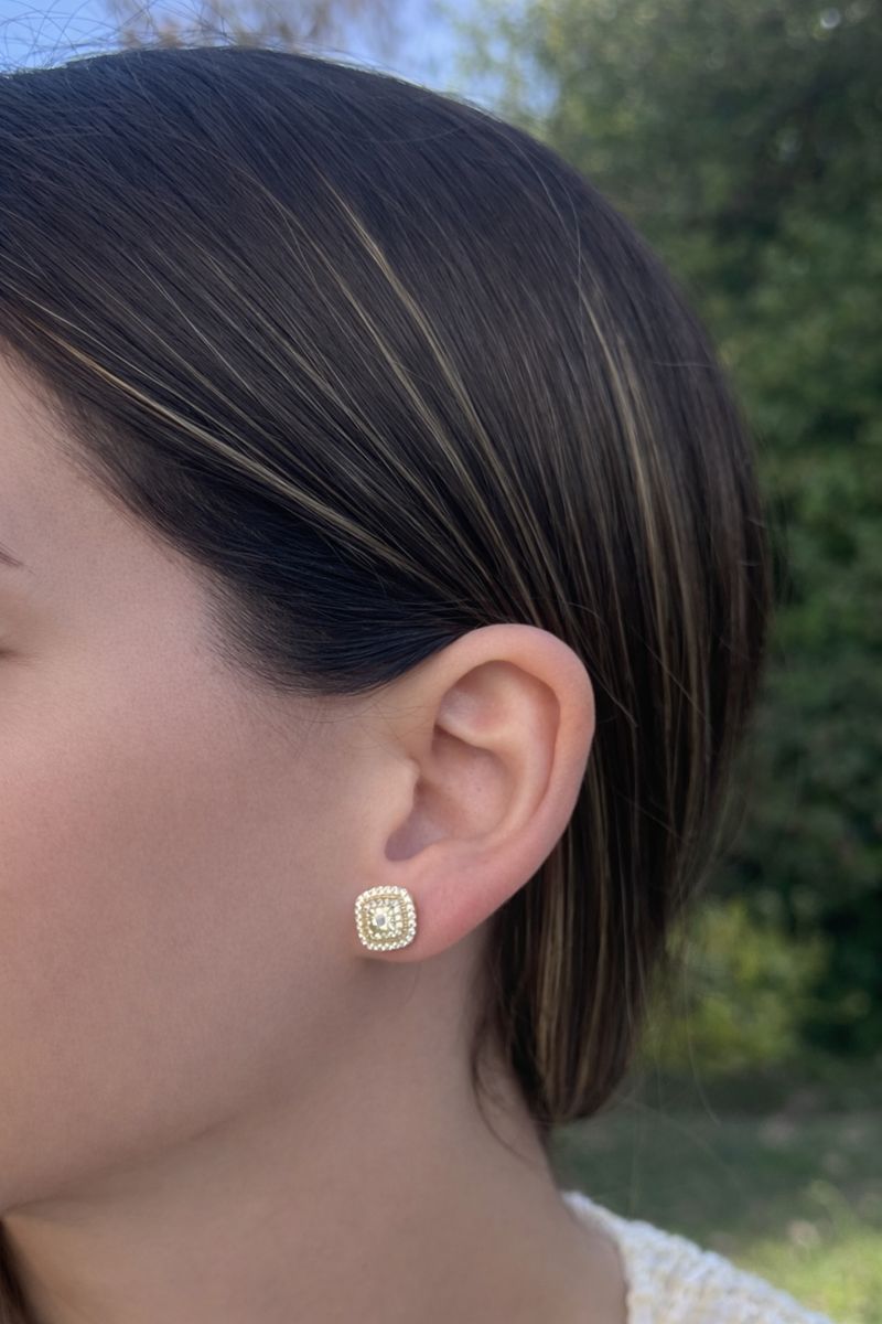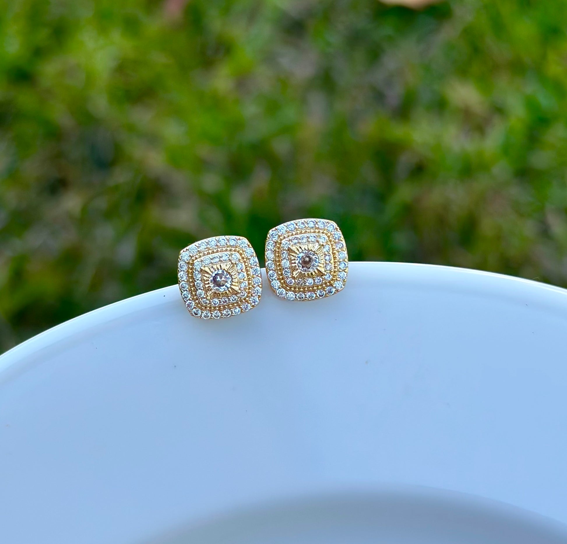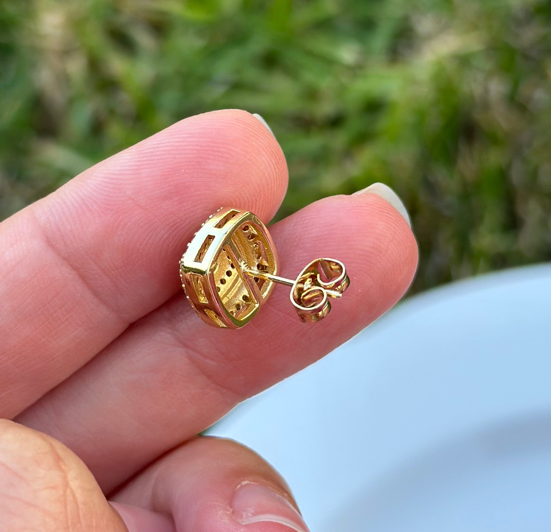 Estos aros de 1,1 cm están chapados en oro y llevan circones de alto brillo, ideales para iluminar el rostro de forma sutil.
