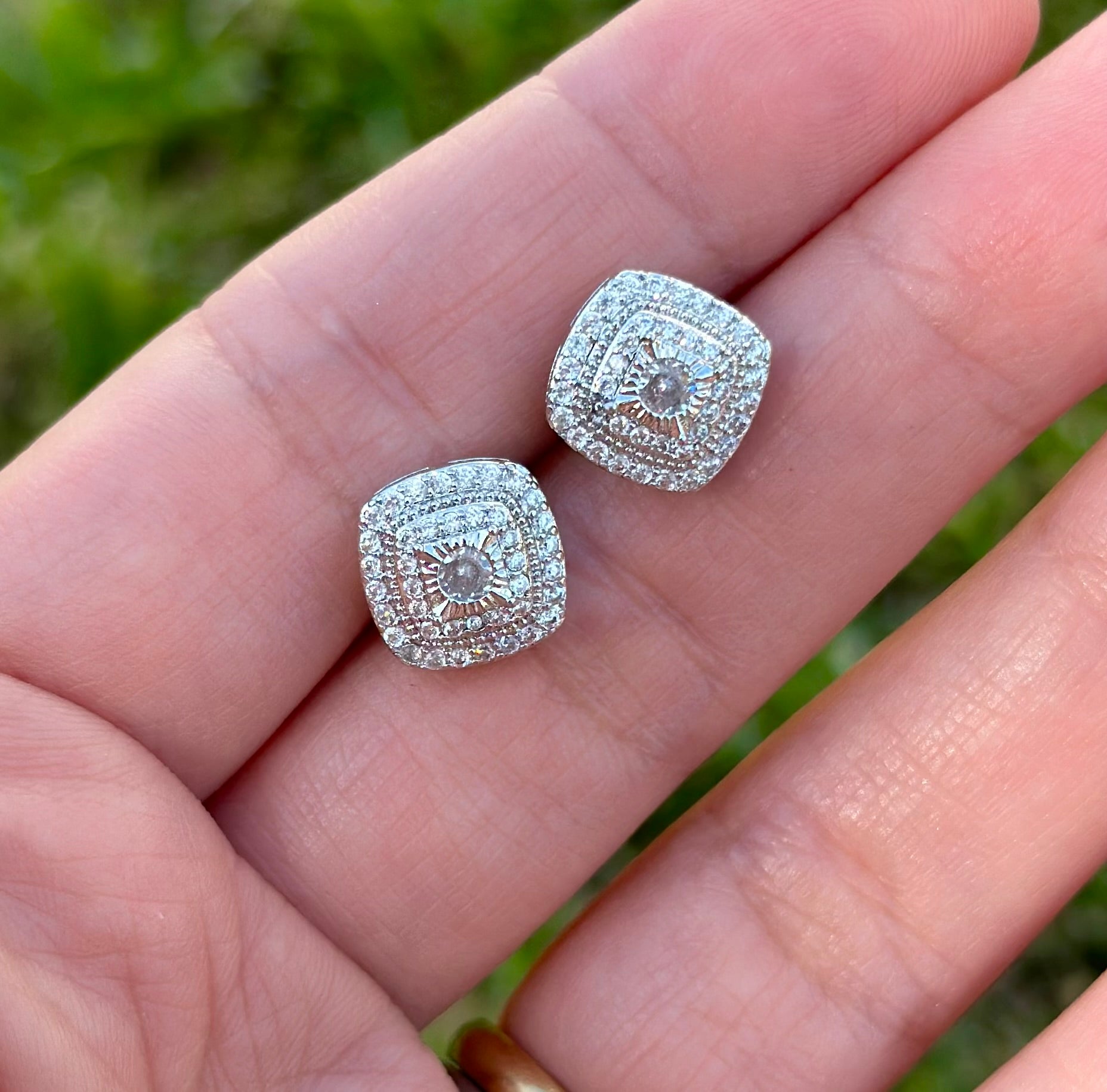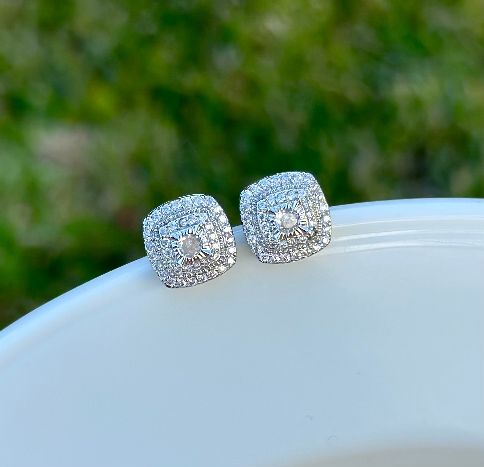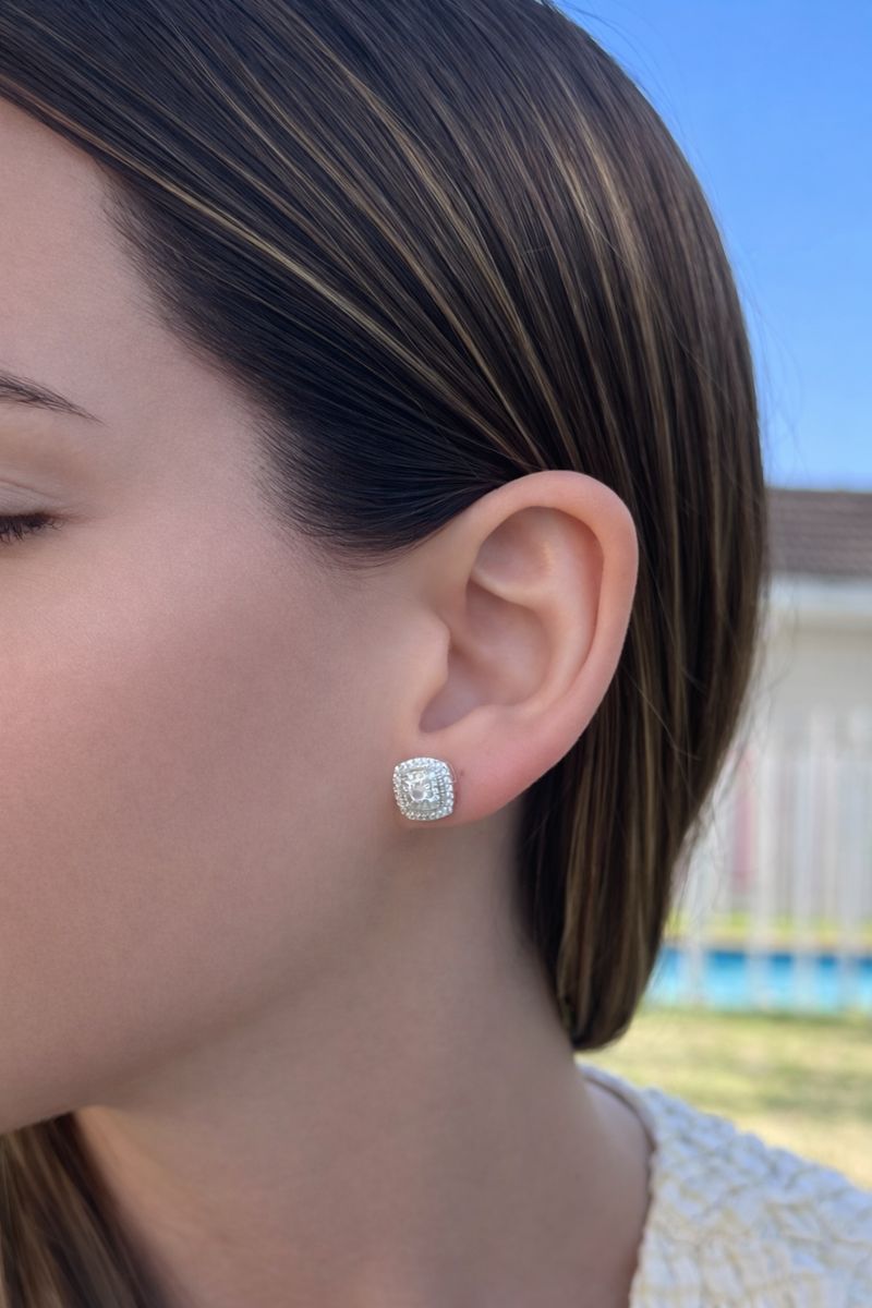 Estos aros de 1,1 cm están chapados en plata y llevan circones de alto brillo, ideales para iluminar el rostro de forma sutil.